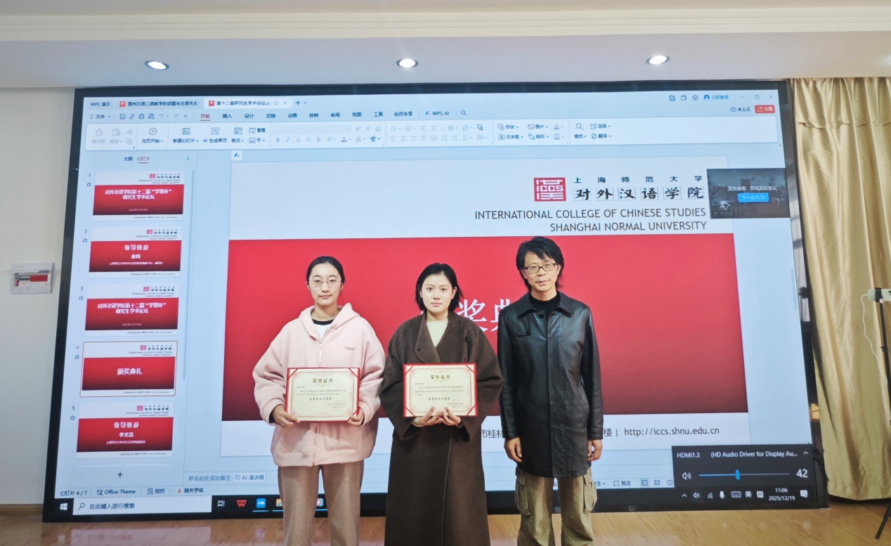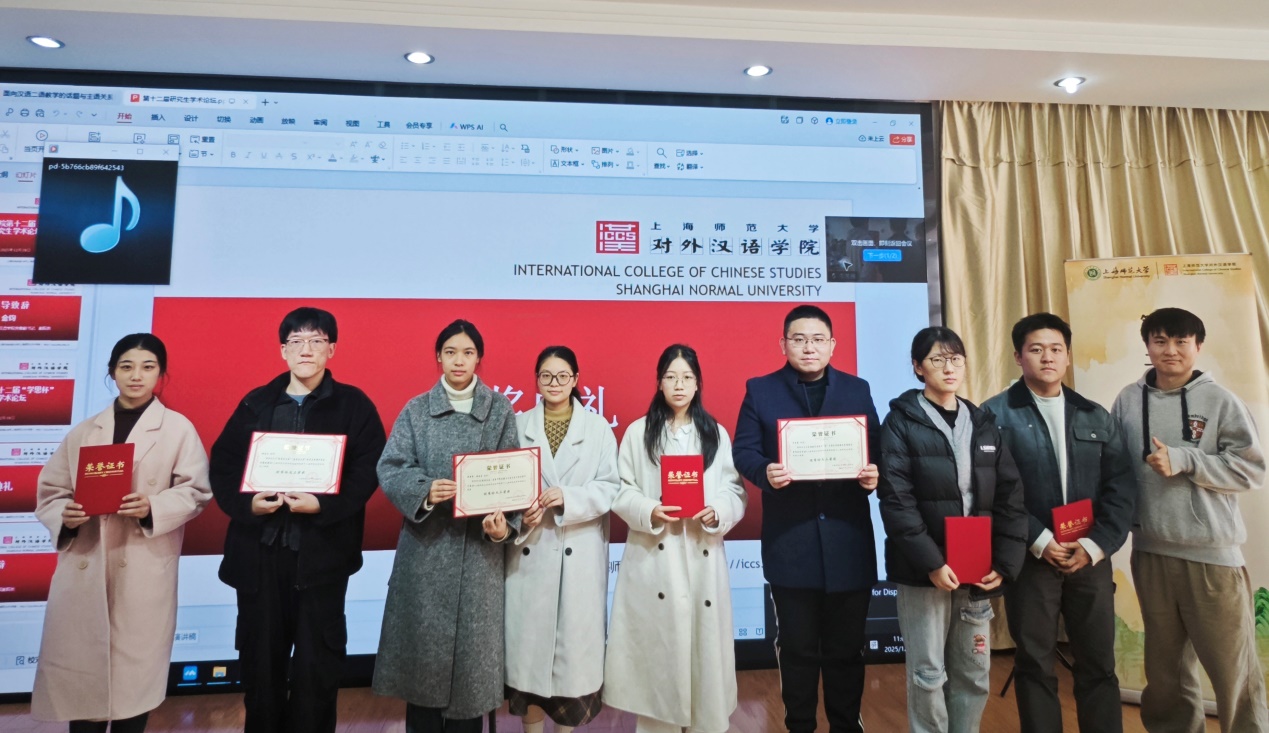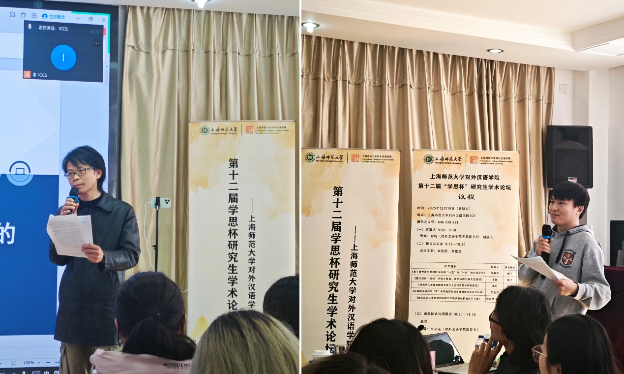 为促进研究生学术交流与思想互鉴,探索语言学及相关领域研究动态与发展趋势,营造开放创新的学术氛围,12月19日,上海师范大学对外汉语学院成功举办第十二届“学思杯”研究生学术论坛。本次论坛共收到来自上海师范大学、北京师范大学、复旦大学等21所院校的40篇学术论文,特邀学院研究生导师李劲荣和李建涛担任报告点评专家,线下参加的还有本次论坛的获奖同学、湖州师范学院师生代表以及对外汉语学院硕博士研究生。
